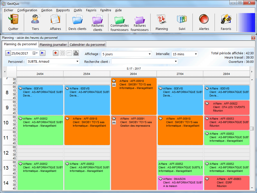 - Une tache sur le planning peut être associée à une affaire et/ou un client.